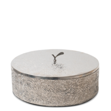 The wax is hand-set in a luxurious Platinum, finely engraved metal casing. Elegantly completed with a matching lid to snuff with and keep the scent inside. This piece is part of our Luxe Platinum Collection.